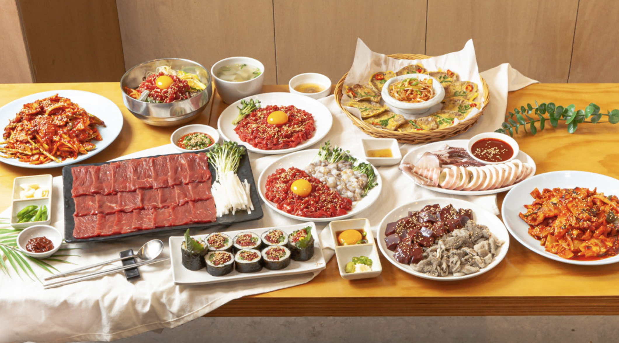 "박가네 육회"는 신선한 육회와 다양한 한 상 차림으로 유명합니다.